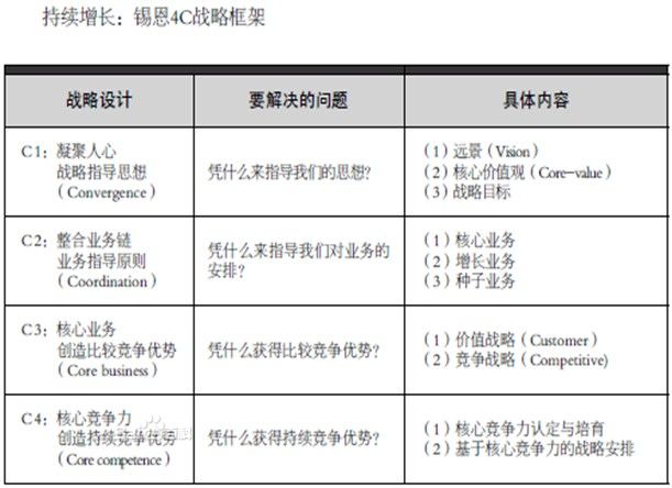 4C战略模型由锡恩集团创始人姜汝祥博士提出并创立的,是一个探寻企业持续兴盛的操作框架和模型,回答了如何使企业长盛不衰的四个基本地问题:第一,如何凝聚员工?第二,如何在时间上让业务获得持续?第三,如何基于客户价值战胜竞争对手?第四,公司如何在客户与员工的基点之上,获得核心竞争力?